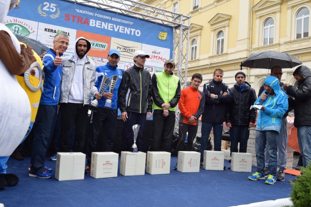 Corposo il cerimoniale delle premiazioni che, nonostante la pioggia, ha visto salire sul palco decine di atleti, non solo per la Strabenevento ma anche per finalizzare le 3 tappe dei “Tratturi del Molise” con cui la società cittadina si è gemellata e che a Benevento hanno visto il loro epilogo. A premiare il delegato allo sport Avv. Rino Caputo, il presidente del Coni di Benevento Avv. Mario Collarile, oltre a Stefano Cialella - patron della gara molisana e Pasquale Della Torca presidente ed organizzatore della Strabenevento.